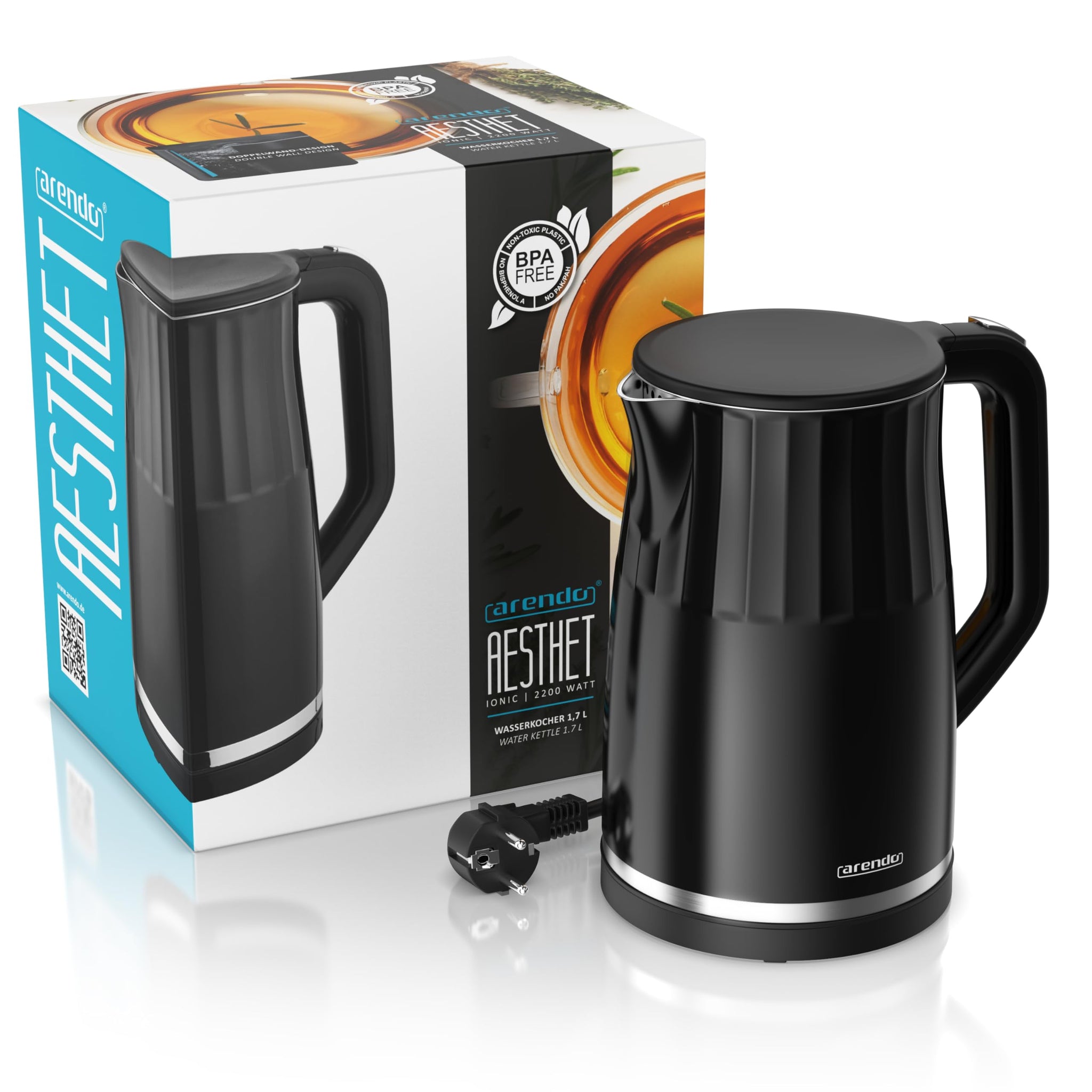 Arendo - digitaler Wasserkocher mit Temperatureinstellung - Edelstahl - Doppelwand Design Cool Touch - Display im Gehäuse - Kabellos - 2200 W - 1,7L – Überhitzungsschutz – Warmhaltefunktion – schwarz