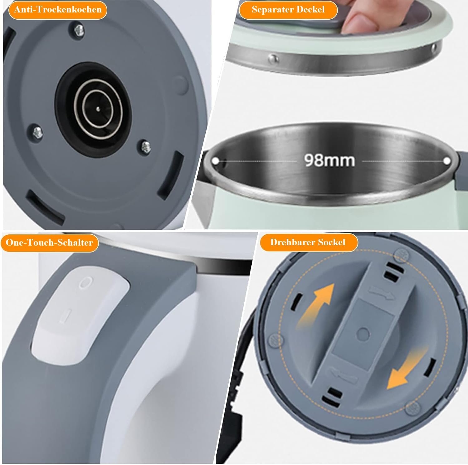 - 【Anwendbare Gelegenheiten】Der multifunktionale reise wasserkocher klein ermöglicht es Ihnen, Kaffee, Tee, Milch, Instant-Nudeln & Suppe, etc. zu brauen, um Ihre verschiedenen Bedürfnisse jederzeit zu erfüllen, so dass es für Haus, Büro, Schlafsaal, Hotel, Reisen, Camping und andere Gelegenheiten geeignet ist