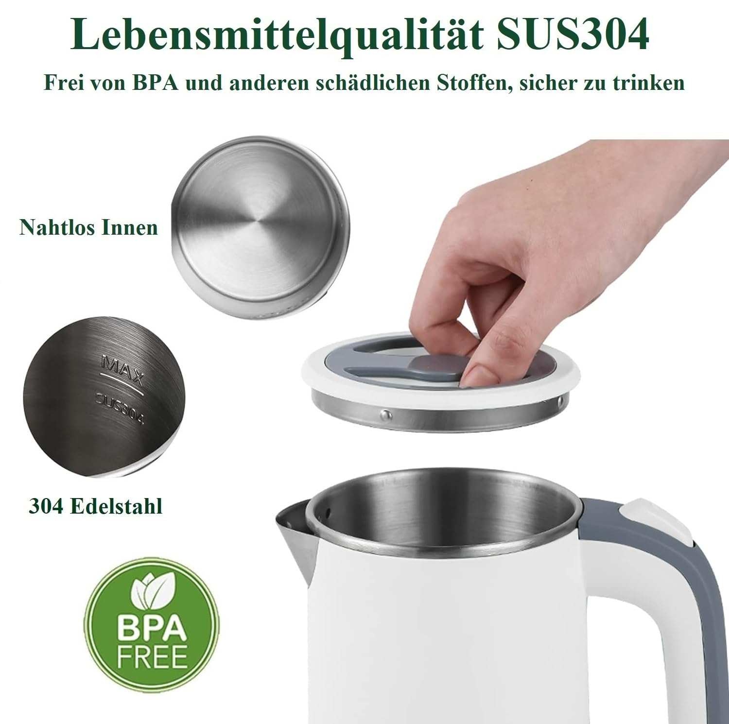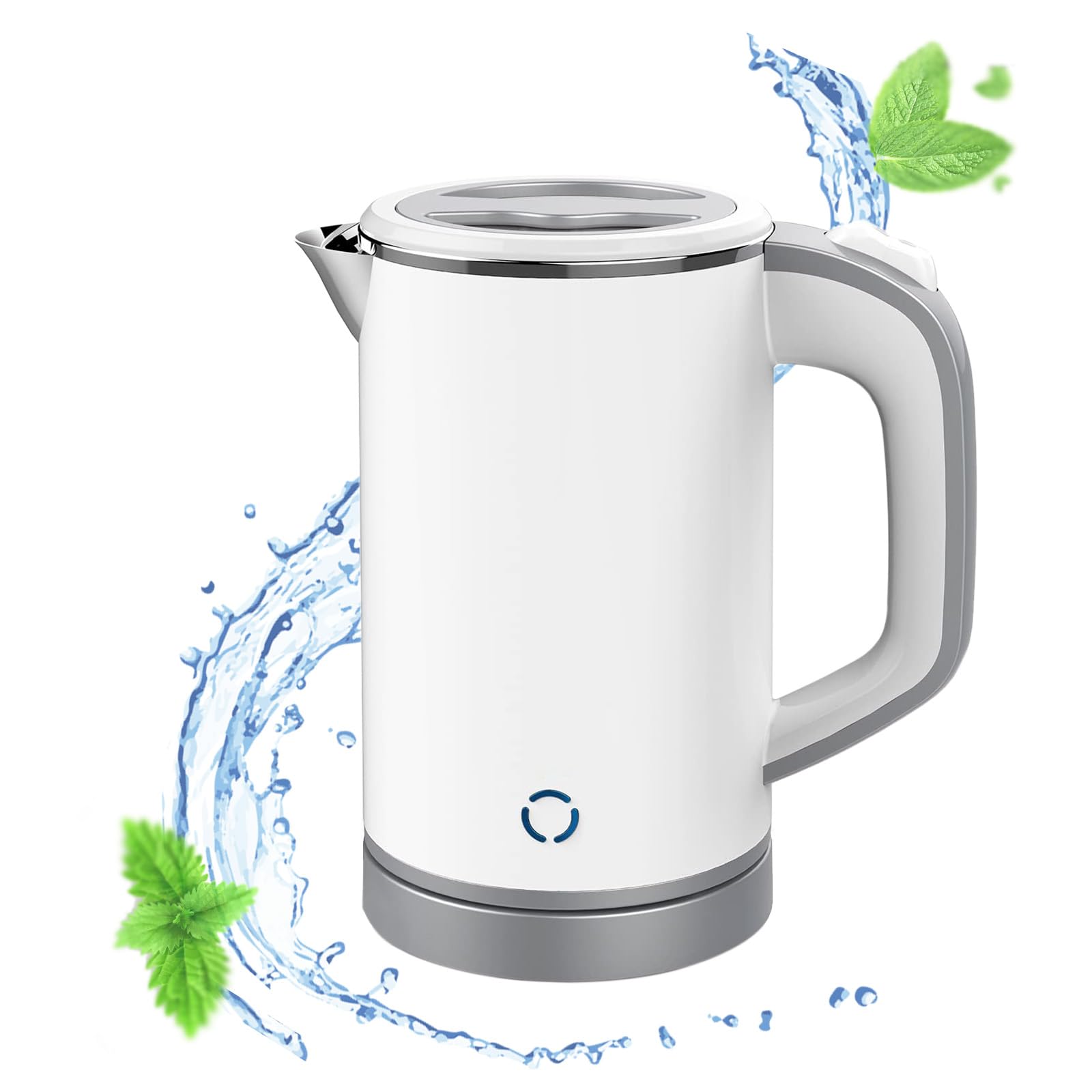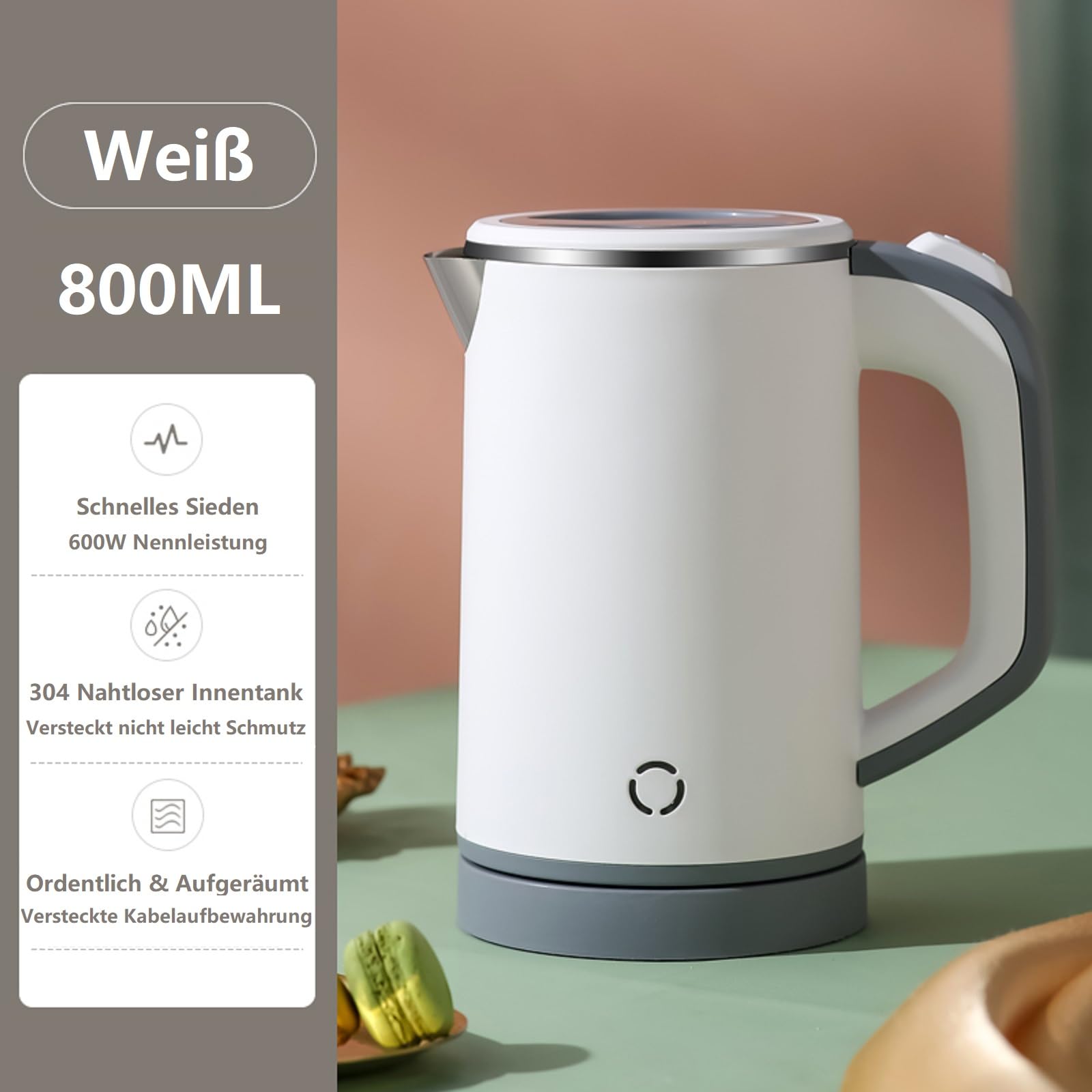MiliPow 800ML Reisewasserkocher, 5 Minuten schnelles Kochen, Mini Camping Wasserkocher, Reise Wasserkocher, Leise, Teekanne aus Edelstahl (Weiß)